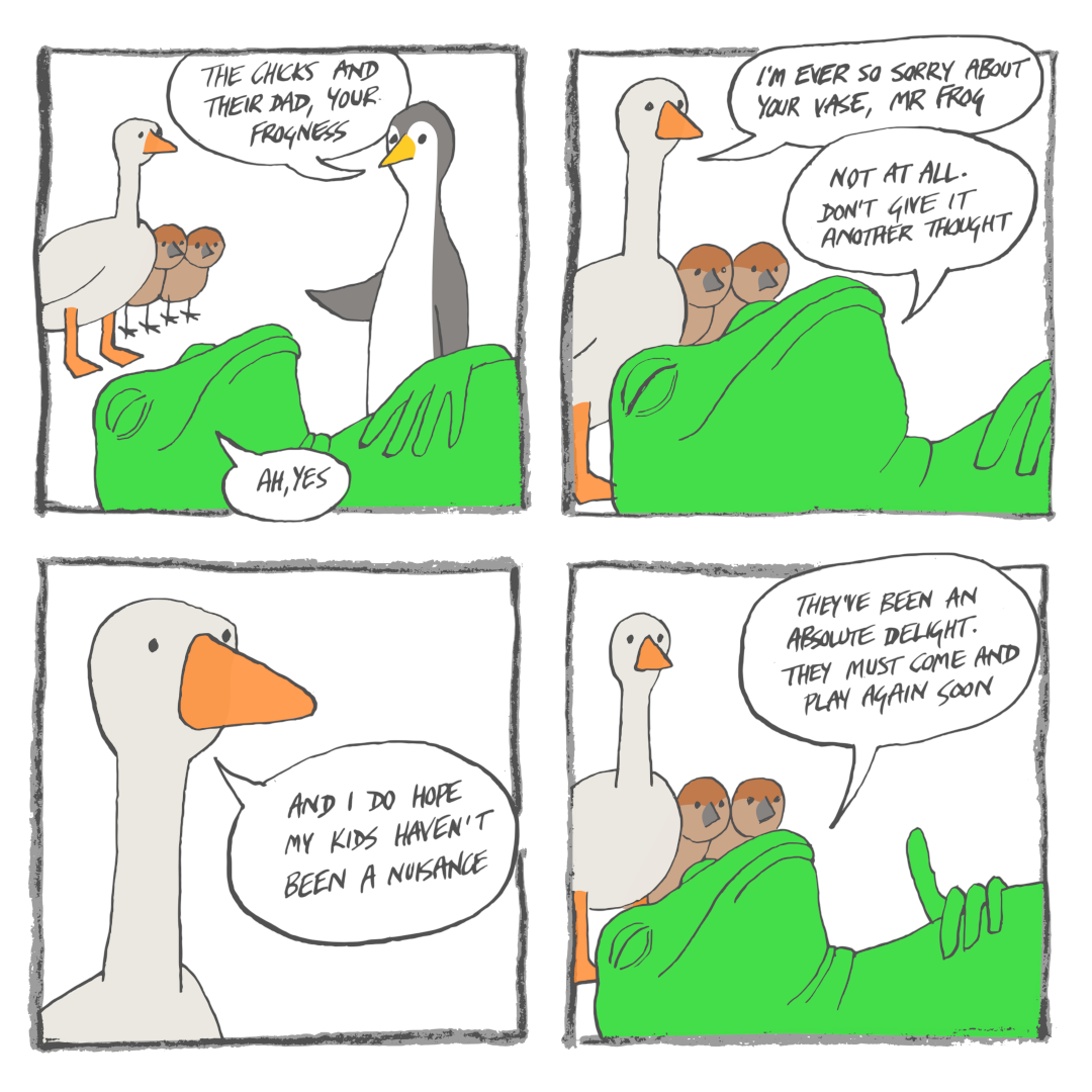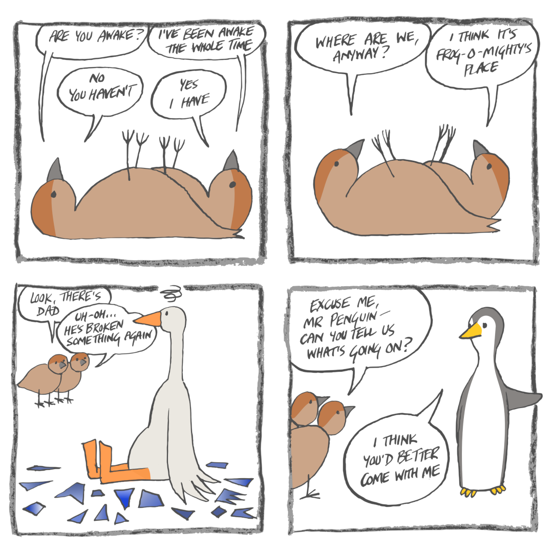 The chicks and their Dad are summoned to see Frog-o-Mighty.