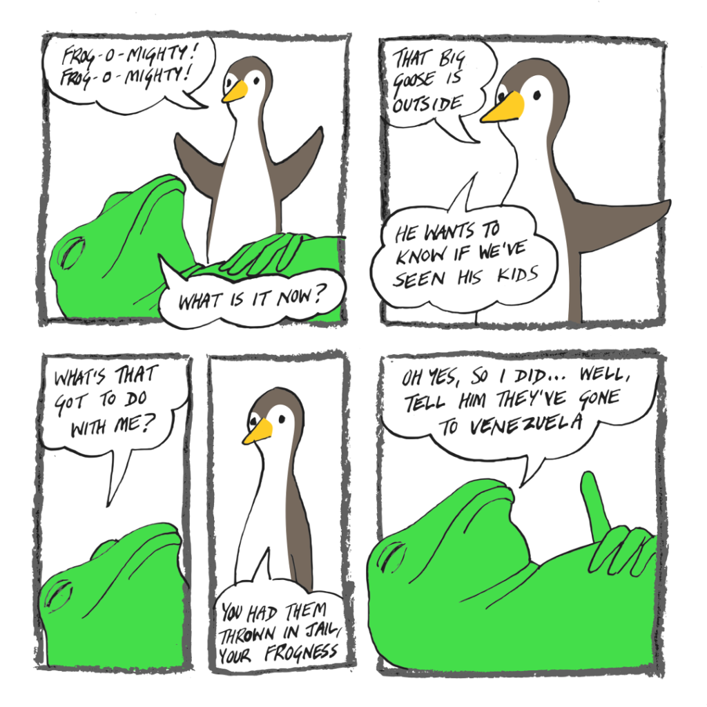 The Goose dad, understandably, wonders why his kids have suddenly gone to Venezuela.