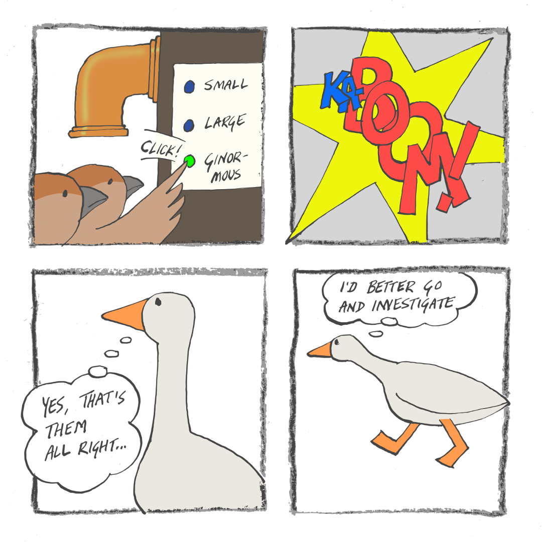 The goose Dad is still trying to find out where his kids have got to.