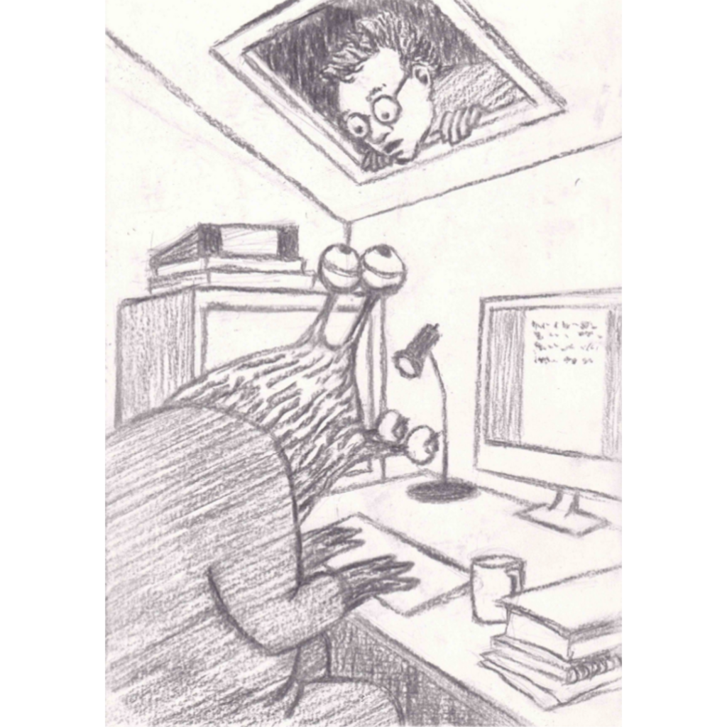 the monster writer and the ‘real world’ writer come face to face; and