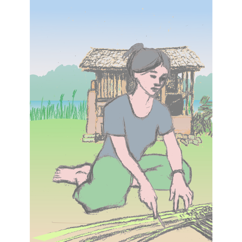 “In the great hall of the palace, Wendy the serving girl, smiling to herself at the memory of the great party the night before, began to tidy up the mess.”