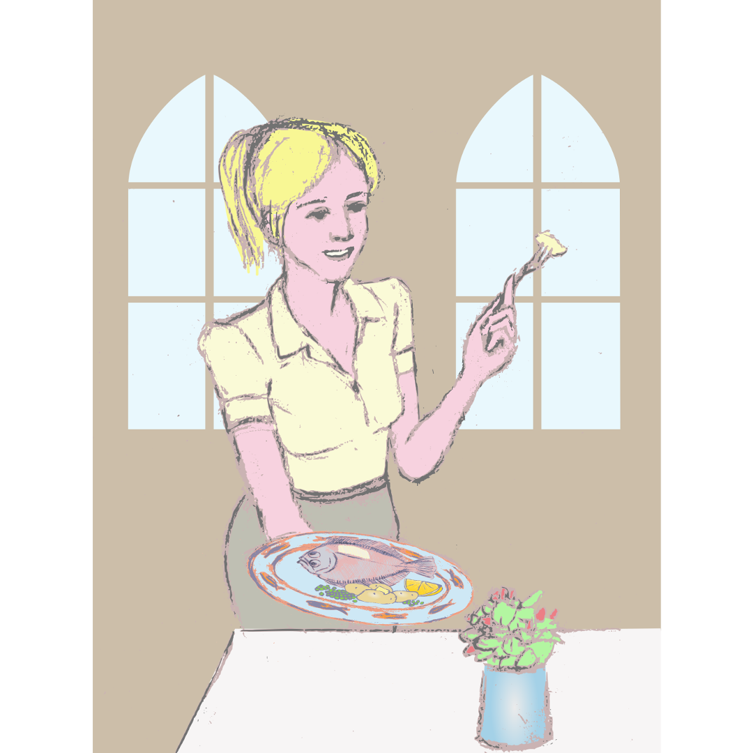 “So Wendy picked up a fork and delicately tried a bit of the fish. ‘Ooh,’ she said. ‘That’s much nicer than I expected. Not as nice as chocolate, though.'”