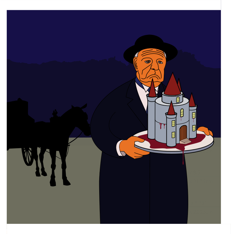 Bangers the butler delivering Lydia’s birthday cake From The Cake Maker of Transylvania, the forthcoming picture book by myself and Mollie Macgregor-Kinnis.