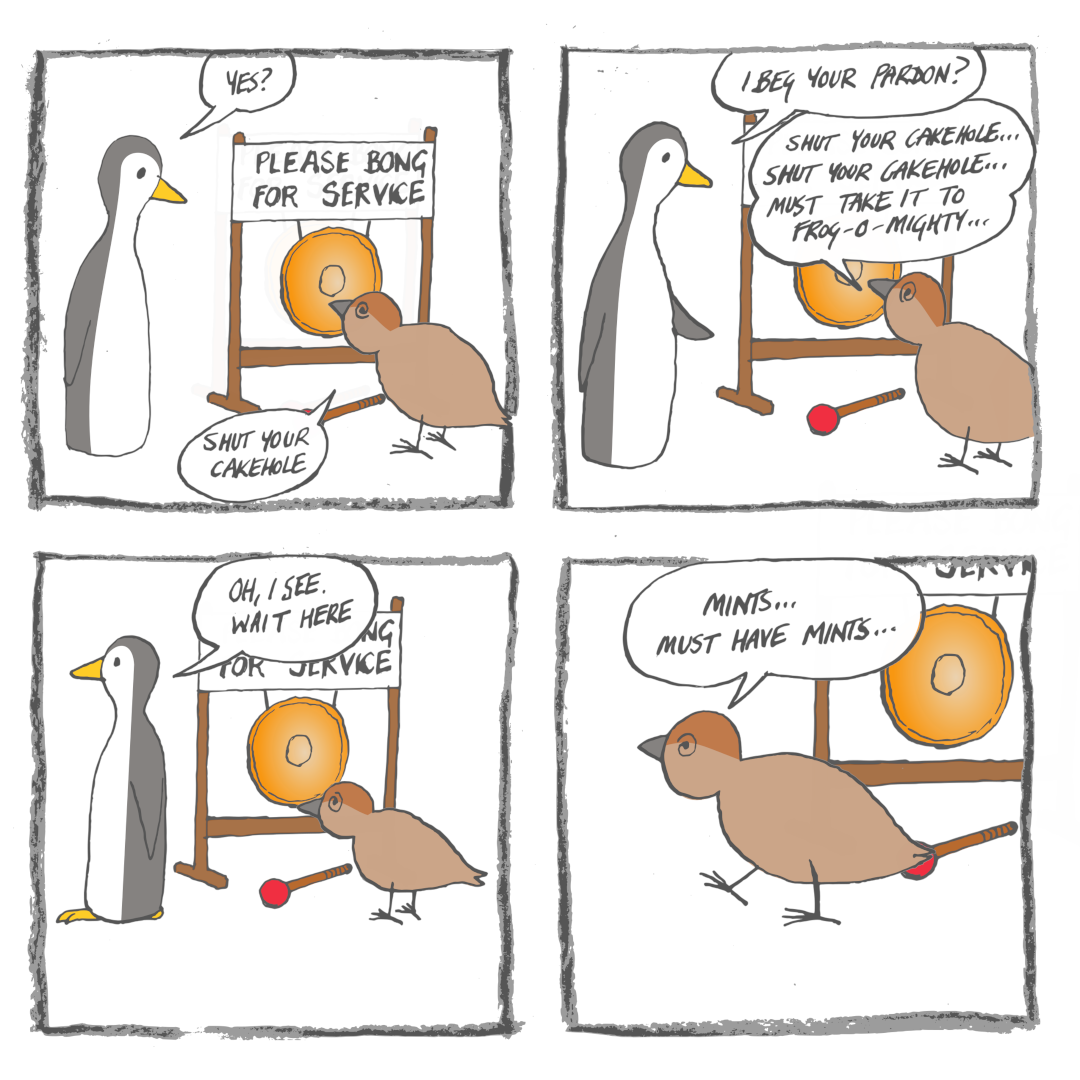 The remaining chick takes his new shutting-up phrase to the Penguin.